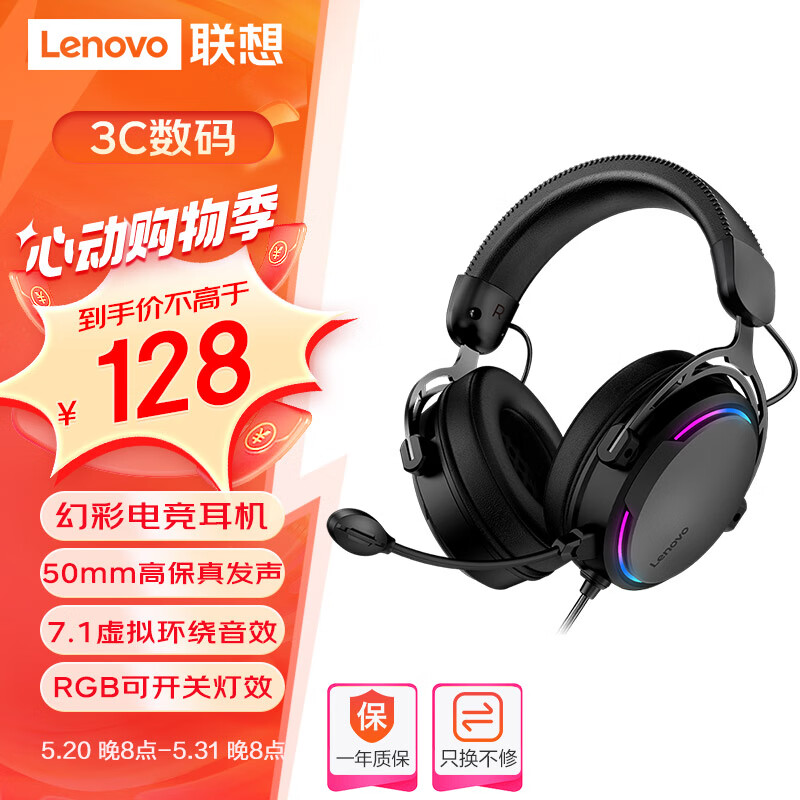 联想(Lenovo) X370 USB7.1声道 RGB游戏耳机电竞耳麦头戴式电脑耳机麦克风吃鸡耳机带线控 黑色价格:128.00元!