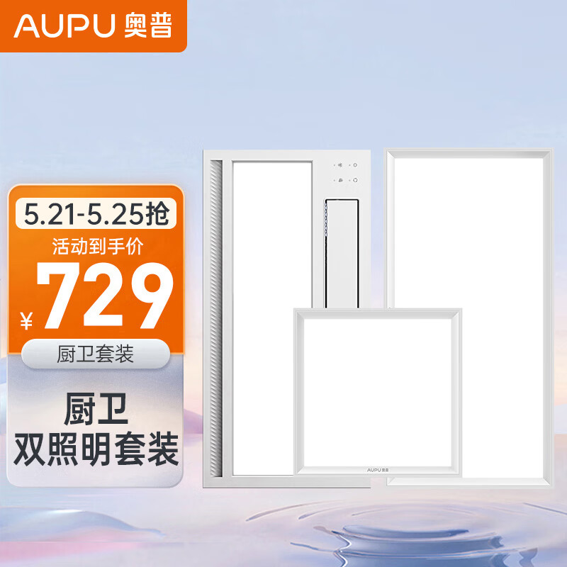 奥普(AUPU)浴霸S368M风暖浴霸大摆风接入米家+长灯+方灯照明套装(附件形式)价格:759.00元!