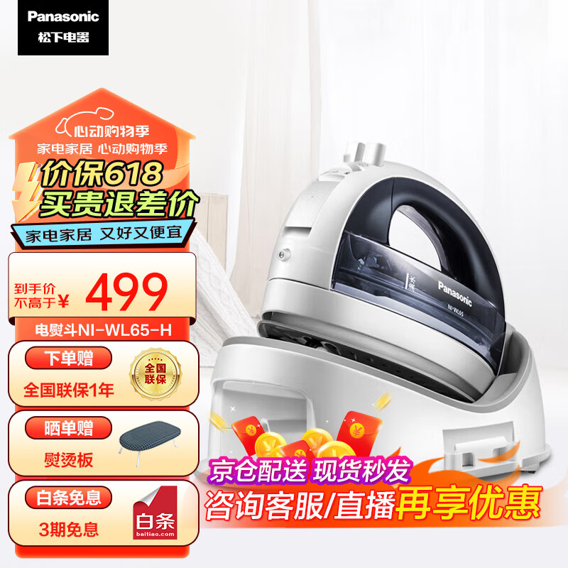 松下(Panasonic)电熨斗家用 手持无线挂烫机 电子恒温感应 自动断电 NI-WL65-H 白色价格:499.00元!