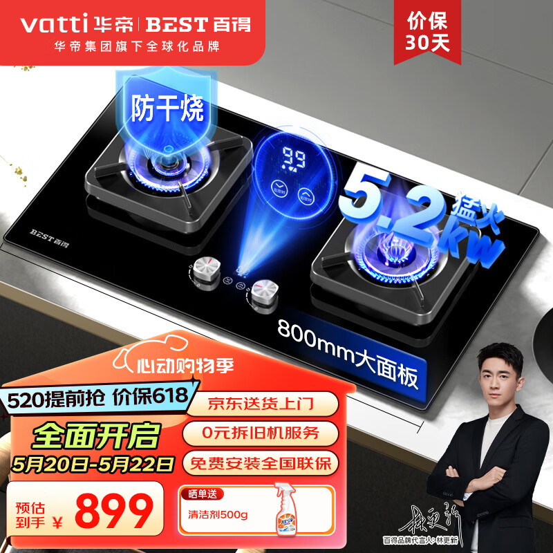 百得(BEST)华帝出品燃气灶天然气煤气灶双灶具 5200W猛火定时灶防干烧台式嵌入式炉灶JZT-QE62(天然气)价格:999.00元!