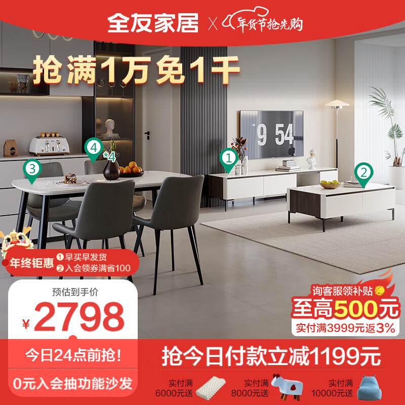 全友家居 时尚拼色客餐厅7件套装DW1181茶几电视柜一桌四椅组合家具价格:3997.14元!