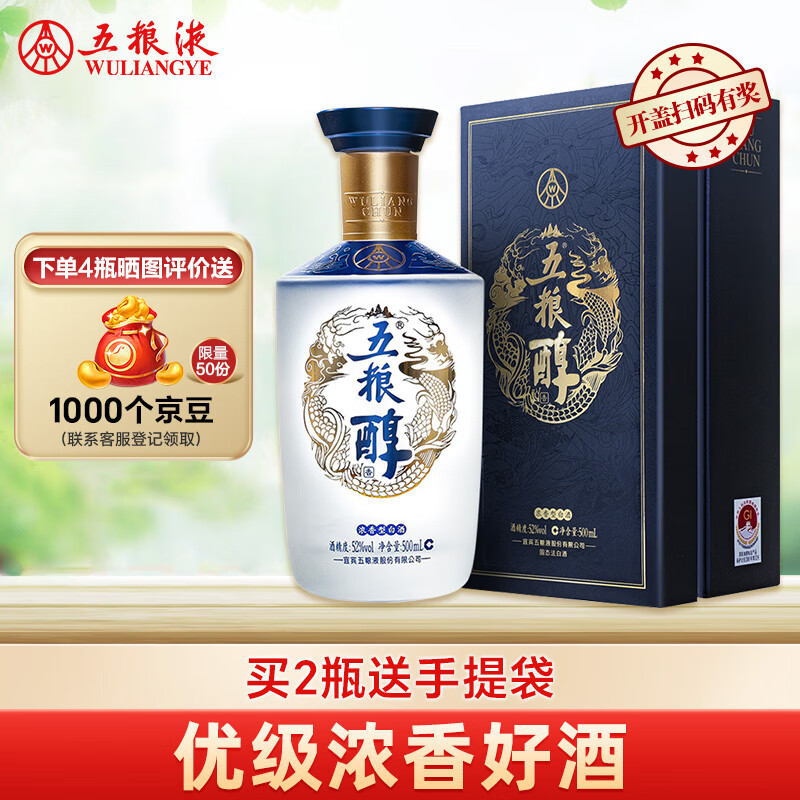 五粮液(WULIANGYE)五粮醇 醇香 52度 端午节浓香型白酒500mL单瓶装优级酒质 礼盒价格:122.90元!