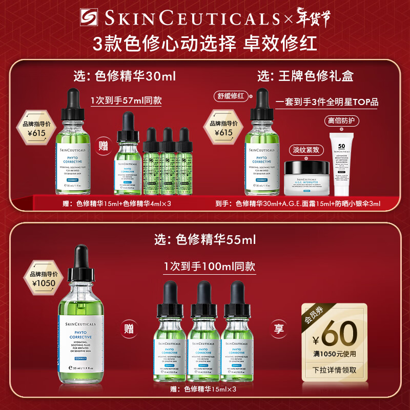 修丽可色修精华30ml护肤品礼盒舒缓修红保湿抗糖抗皱氧防晒新年礼物女价格:615.00元!