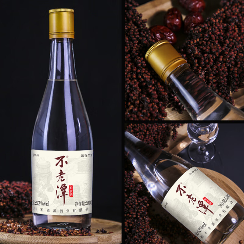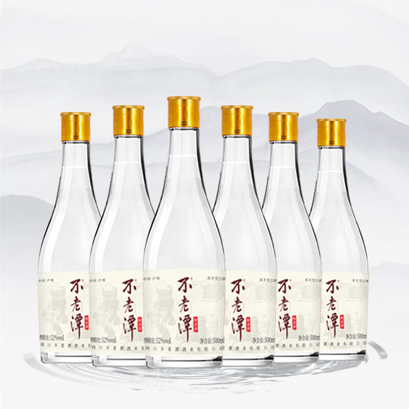 不老潭52度粮食酒浓香型高度白酒高粱酒瓶装送礼500ml*6价格:89.00元!