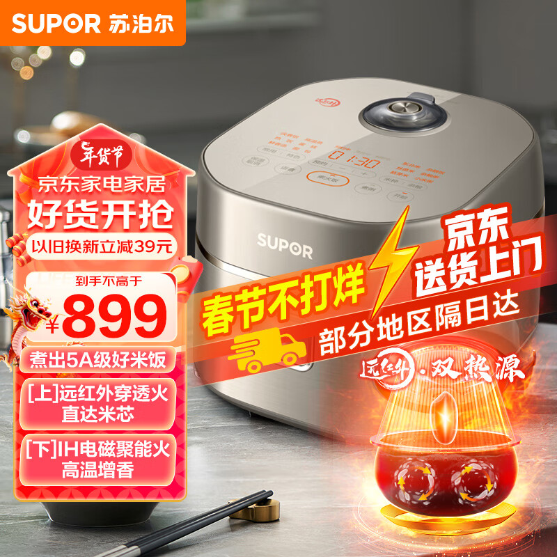 苏泊尔(SUPOR)电饭煲Pro电饭锅2L远红外系列 IH电磁加热远红外穿透铜晶球釜内胆家用智能多功能电饭煲SF20HC7998价格:1049.00元!
