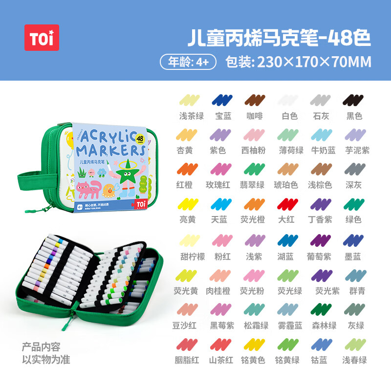 TOI丙烯马克笔48色小学生儿童手绘涂鸦DIY水彩笔4-8岁男孩女孩六一儿童节礼物 48色价格:145.90元!