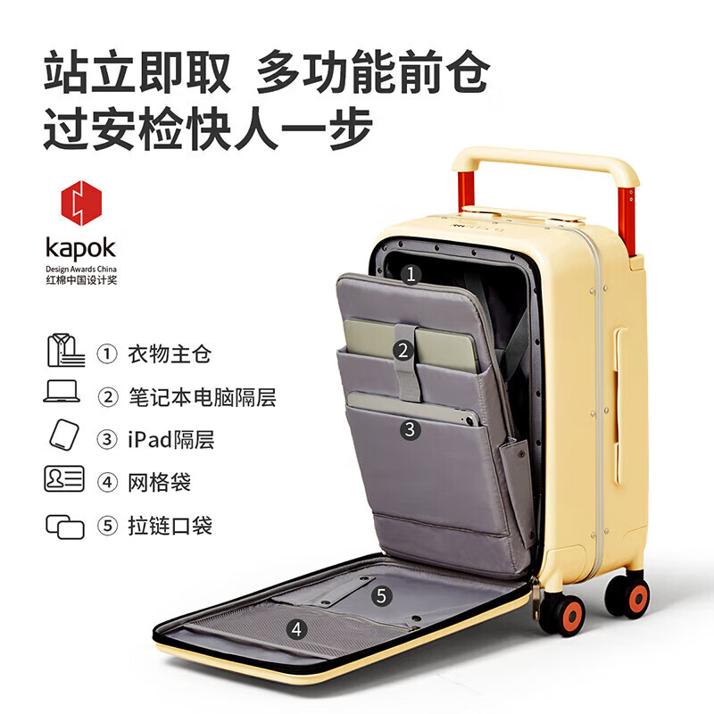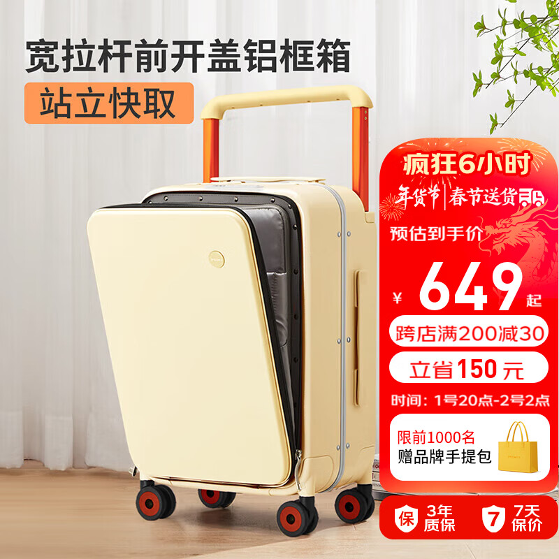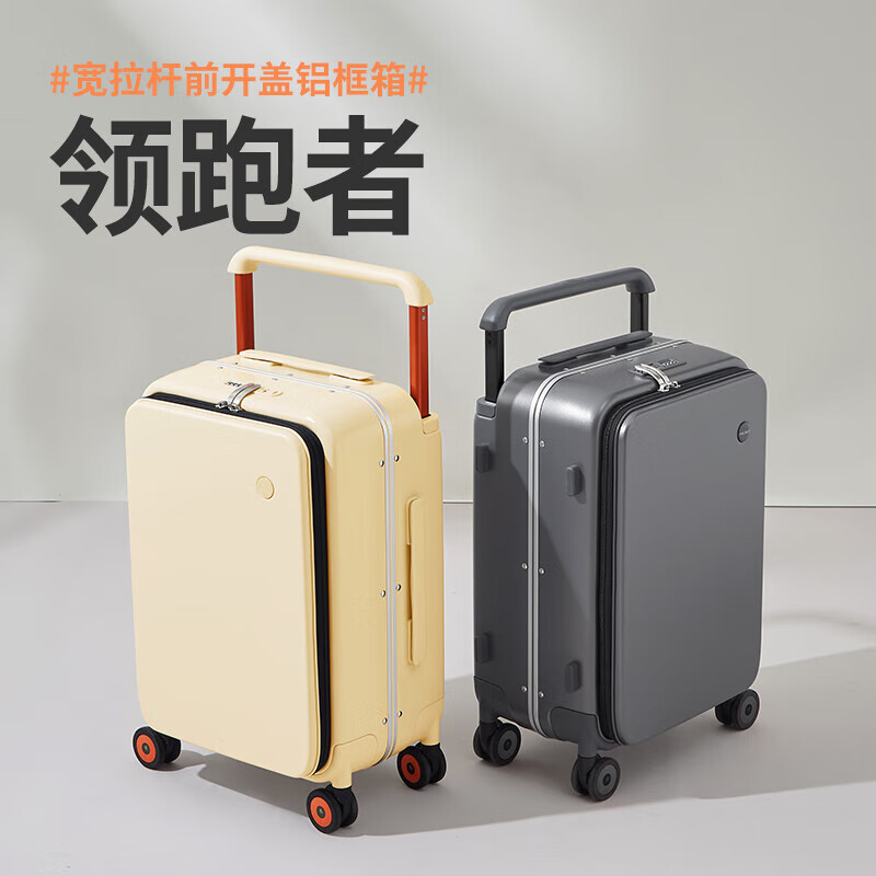 米熙前开盖铝框拉杆箱子行李箱大容量商务密码旅行箱女24英寸云雀黄75价格:799.00元!