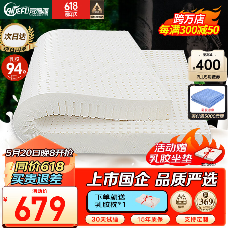 爱德福乳胶床垫泰国进口天然乳胶 榻榻米1.5m1.8单双人120*200*5(95D)价格:799.00元!