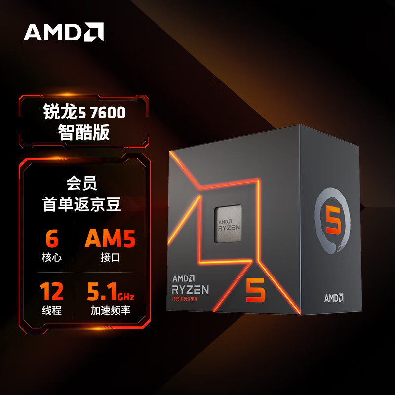 AMD 锐龙5 7600智酷版处理器(r5) 6核12线程 加速频率至高5.1GHz 65W AM5接口 盒装CPU价格:1499.00元!