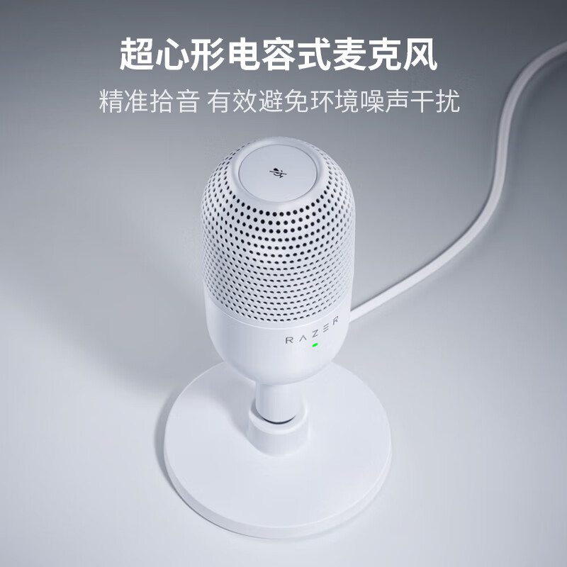 雷蛇(Razer)魔音海妖V3迷你版 桌面麦克风直播唱歌专用麦克风 RGB 白色价格:399.00元!