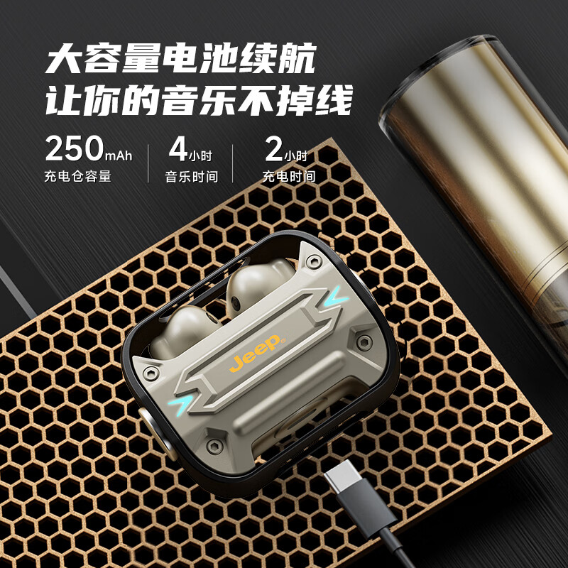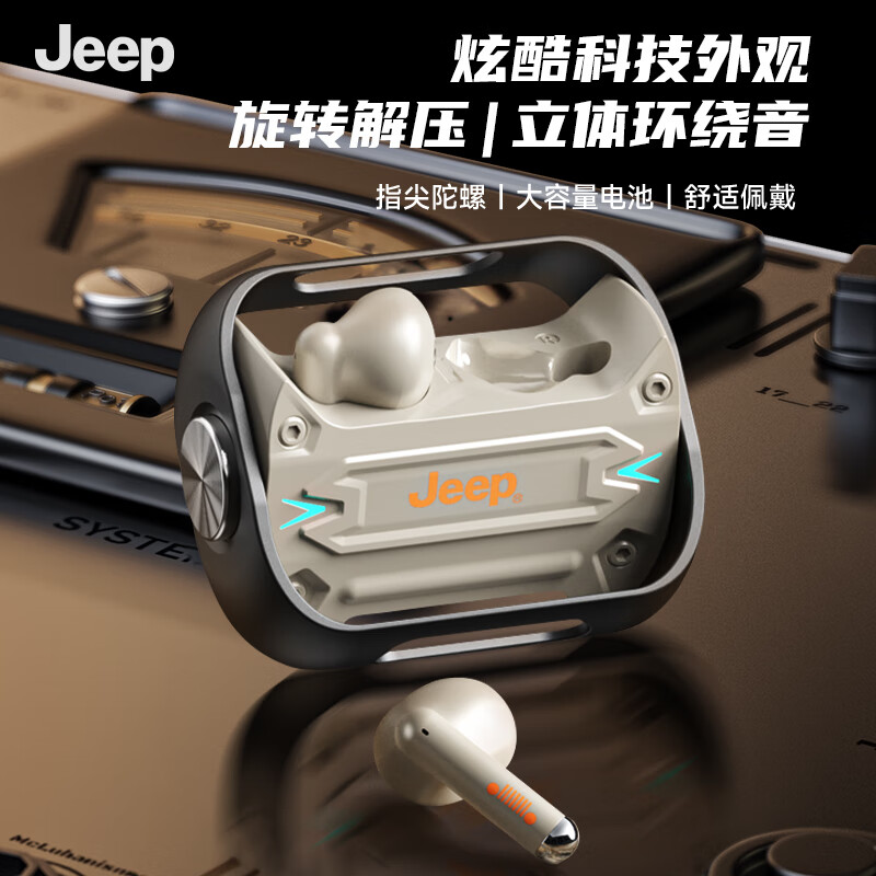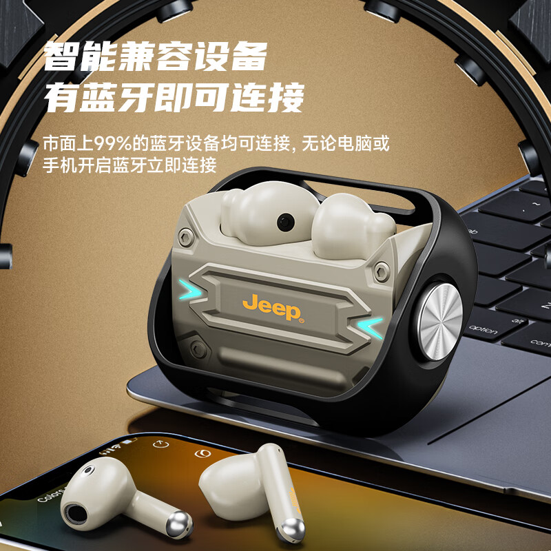 Jeep吉普蓝牙耳机 真无线耳机 半入耳式蓝牙5.3适用于苹果/安卓手机长续航音乐游戏耳机 JPEW001米白色价格:239.00元!