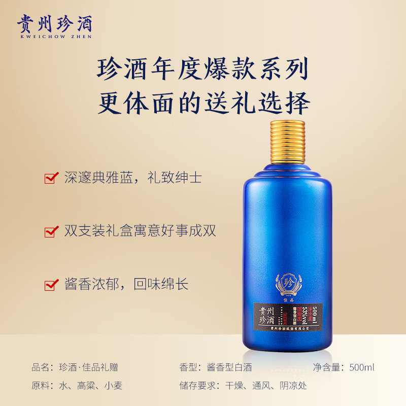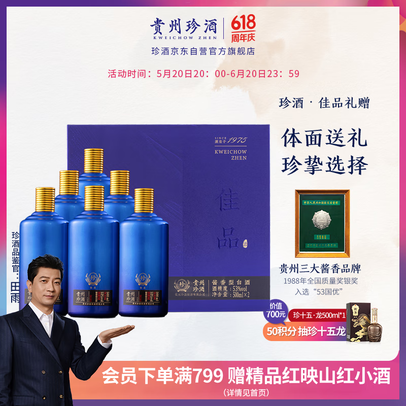 珍酒佳品礼赠 酱香型白酒 53度 500ml*6 整箱装 大曲坤沙价格:838.00元!