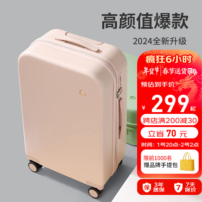 米熙高颜值拉杆箱子行李箱女旅行箱包轻便密码登机箱20英寸淡山茱萸粉价格:369.00元!