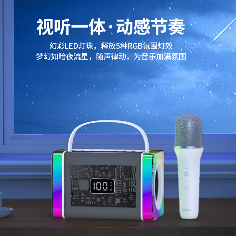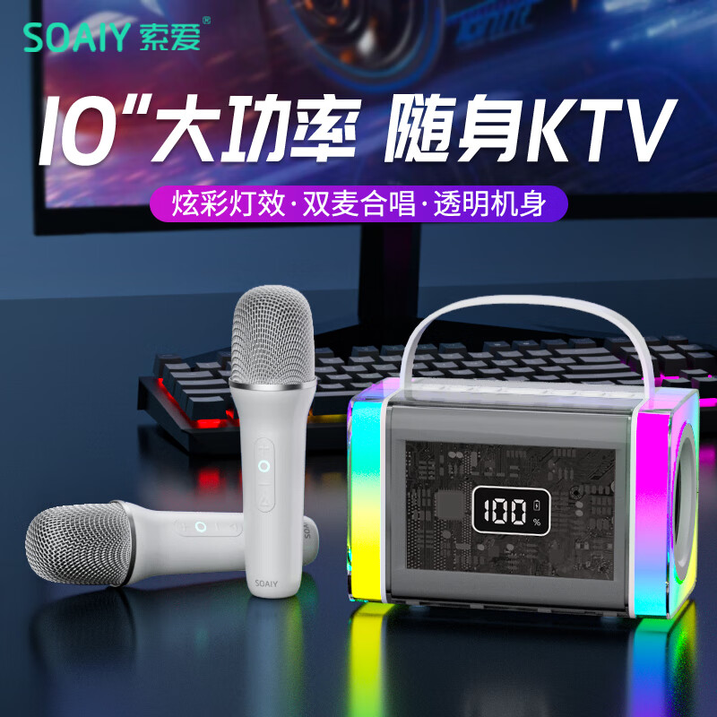 索爱(soaiy)SK11话筒音响一体麦克风家用唱k歌自带声卡无线蓝牙音箱卡拉ok家庭ktv 苹果白【双麦版】价格:299.00元!