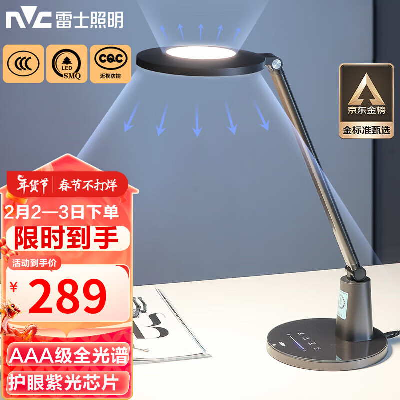 雷士(NVC)AAA减蓝光危害全光谱护眼阅读触控调光儿童学生学习台灯-银河黑价格:431.00元!