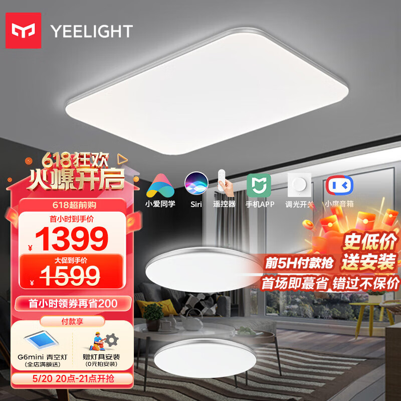 Yeelight易来灵犀led灯吸顶灯 支持米家智能灯具 客厅卧室灯具套餐3室1厅价格:2099.00元!