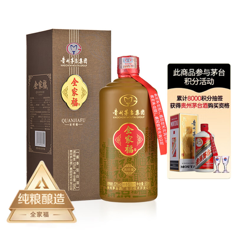 茅台集团 全家福 吉祥福 飞天仙女图 酱香型白酒 53度 500ml*1瓶价格:242.00元!