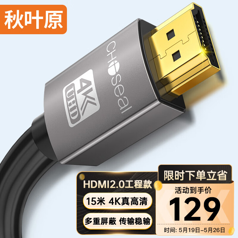 秋叶原HDMI线工程级 4K数字高清线 3D视频线 笔记本电脑机顶盒连接电视投影仪显示器数据连接线15米DH500价格:159.00元!