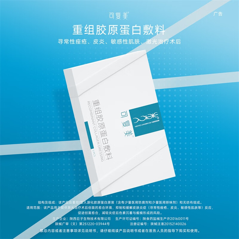 3、可复美重组胶原蛋白敷料2盒共10贴面部项目前后创面愈合缓解泛红敏感肌肤痤疮皮炎减轻色素沉着这款面膜质量很好,一直在用,做完医美之后用效果也好,爆赞。