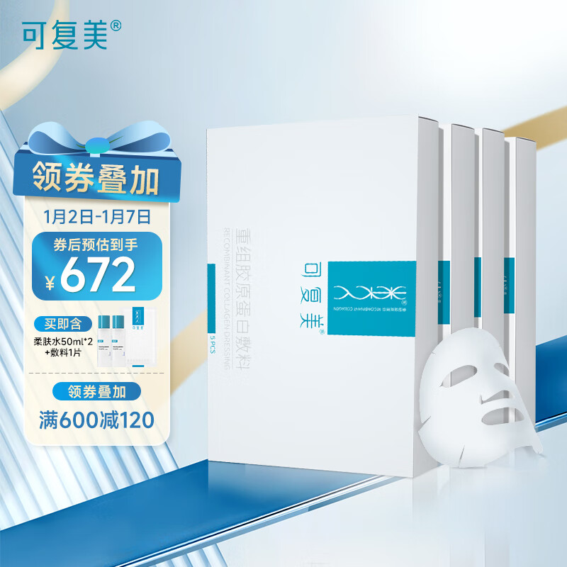 可复美 重组胶原蛋白敷料4盒共20贴 面部项目前后创面愈合 缓解泛红敏感肌肤痤疮皮炎 减轻色素沉着价格:742.00元!