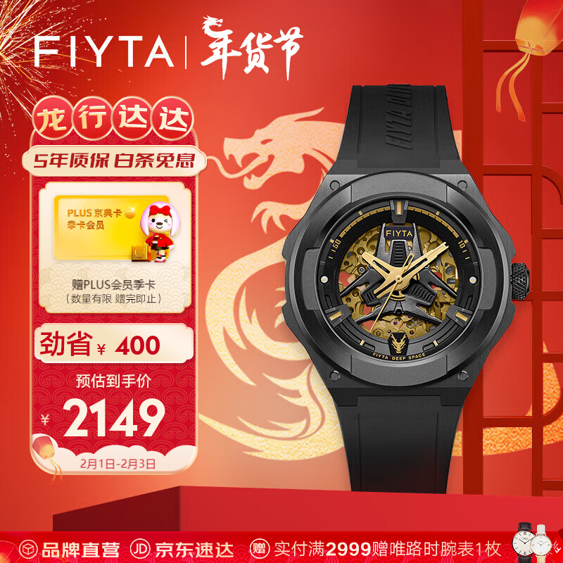 飞亚达(FIYTA)星际系列 “金龙”主题 男士机械腕表 国潮节日礼物送男友价格:2549.00元!