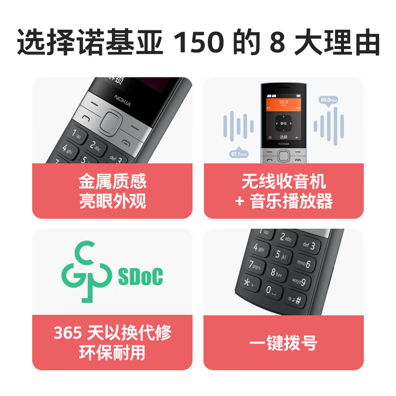 【2023新版】诺基亚(NOKIA)150(2023)红色 直板按键 双卡双待 学生备用功能机 老人老年手机价格:229.00元!