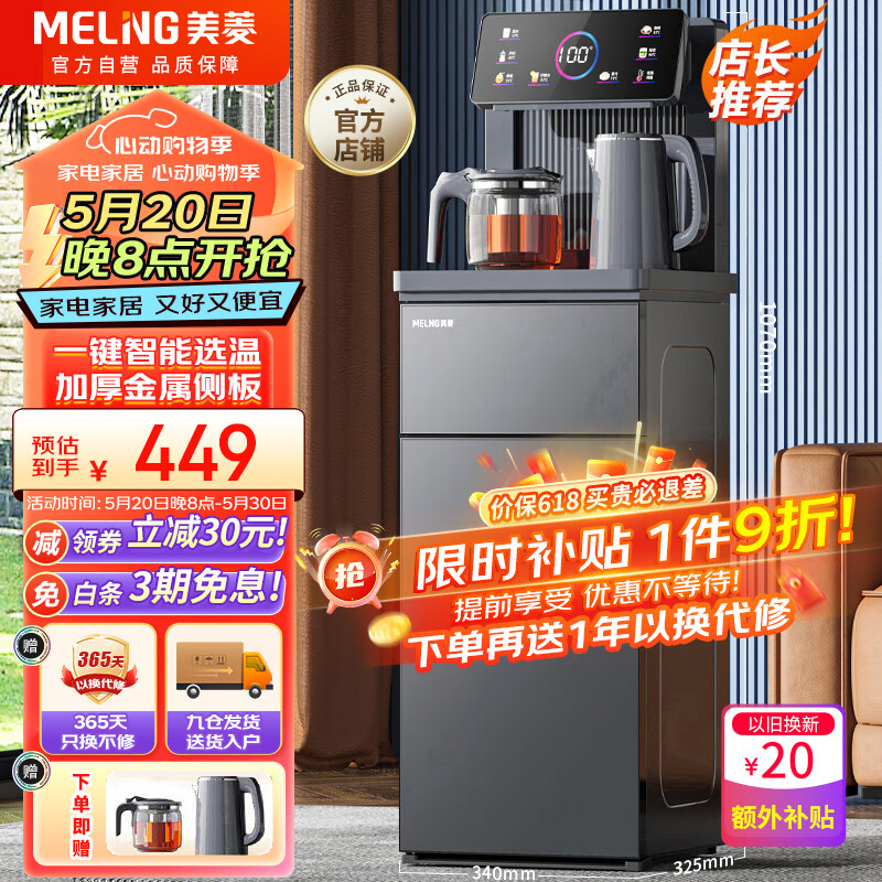 美菱(MeiLing)茶吧机 家用饮水机制冷智能遥控立式下置水桶 LED炫彩大屏一键选温泡茶机-冷热型MY-C912-B价格:529.00元!