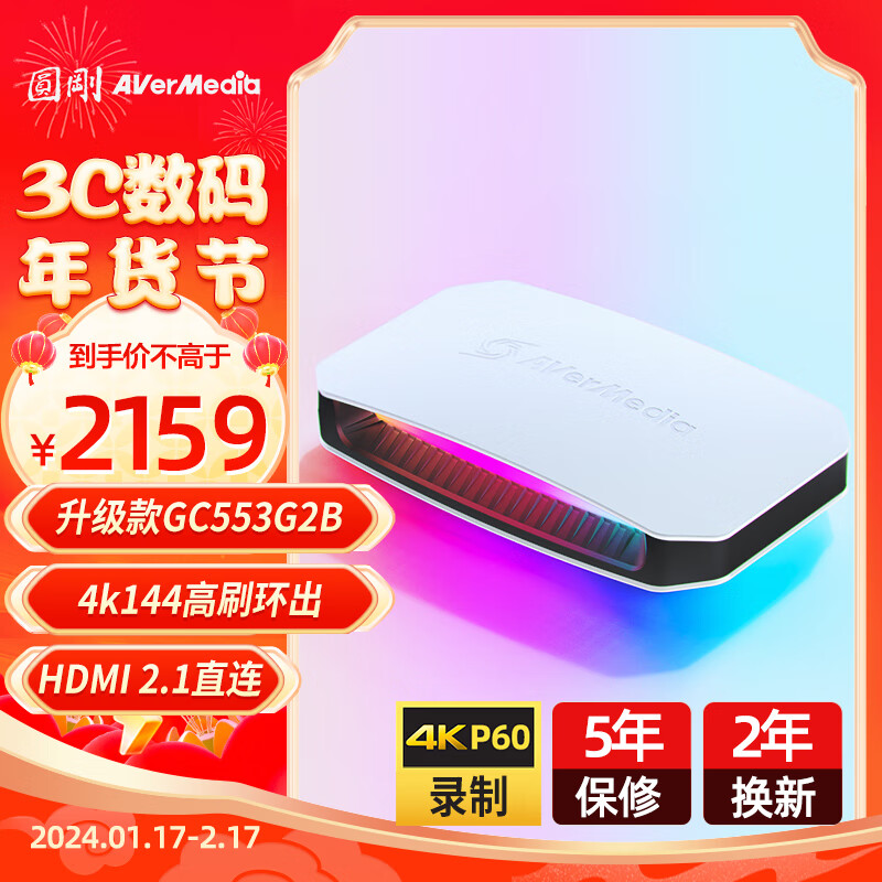 圆刚(AVerMedia)GC553G2W升级版高清4K144视频采集卡hdmi2.1相机/switch/ps5/xbox游戏专业赛事直播设备价格:2159.00元!