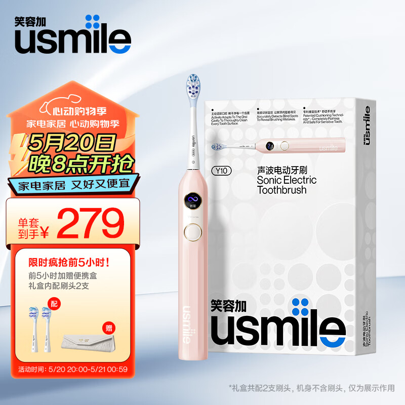 usmile笑容加电动牙刷 成人声波震动电动牙刷 情侣款送男友/送女友 Y10贝儿粉 520情人节礼物价格:269.00元!