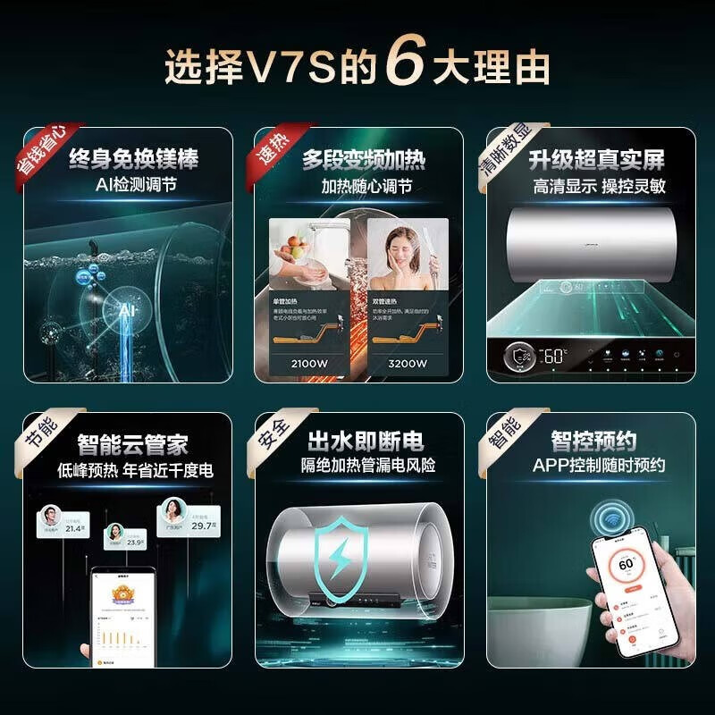 美的(Midea)电热水器60升 2300/3300w变频双管速热 免换镁棒健康免清洗家用大水量热水器 智能APP控制 80L 3300W 出水断电价格:1549.00元!