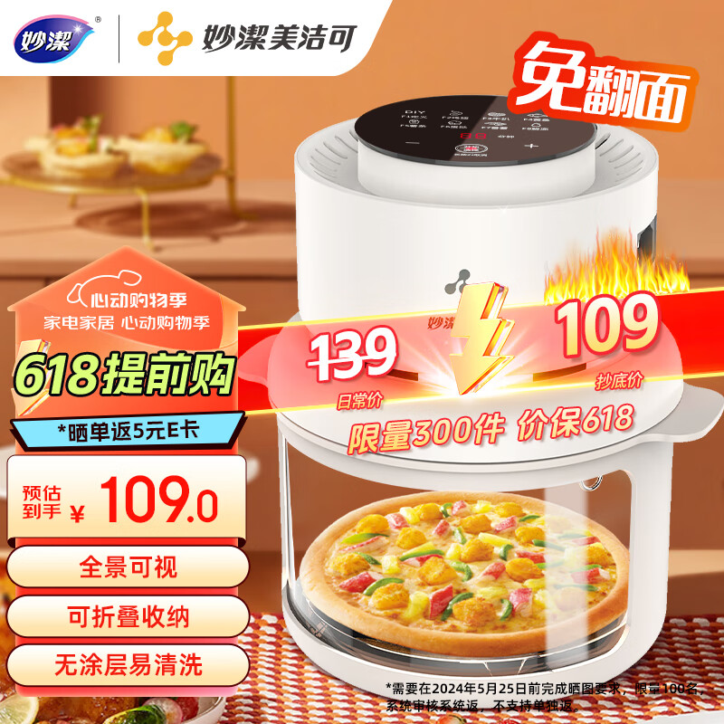 妙洁美洁可空气炸锅3L 不用翻面 精准控温 不沾易清洗 轻脂低油煎炸 K2奶油白价格:109.00元!
