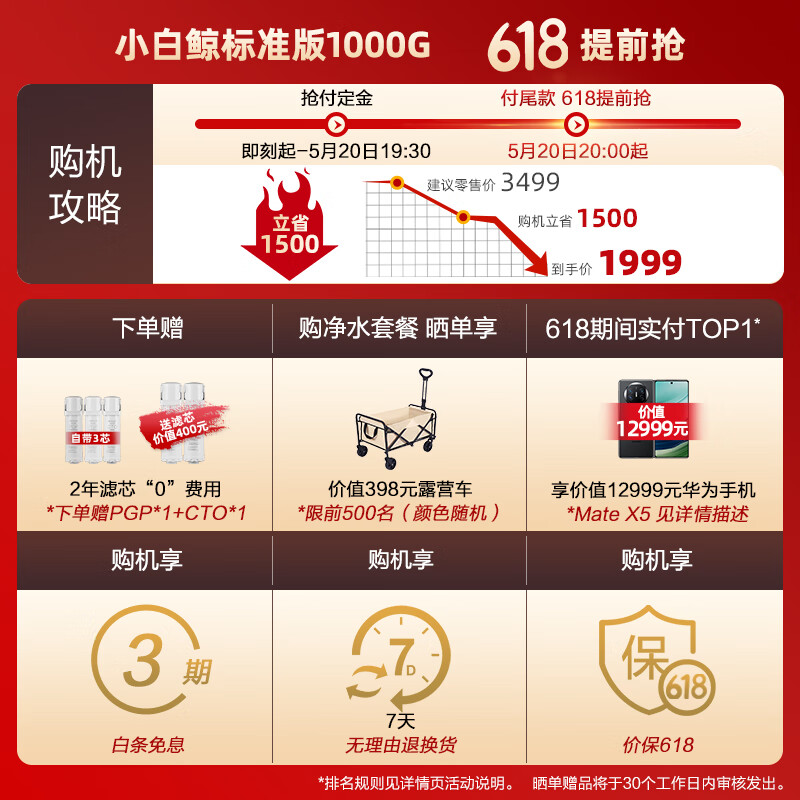 沁园(TRULIVA)小白鲸pro1000G净水器 鲜活水家用大通量厨下式直饮机 5年RO反渗透过滤器 UR-S51045价格:1999.00元!