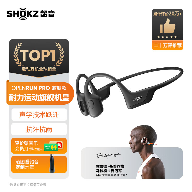韶音(SHOKZ)【历史低价】OpenRun Pro骨传导蓝牙耳机开放式耳机运动无线骨传导耳机跑步不入耳佩戴S810/S811 【店铺爆款】骑士黑价格:998.00元!
