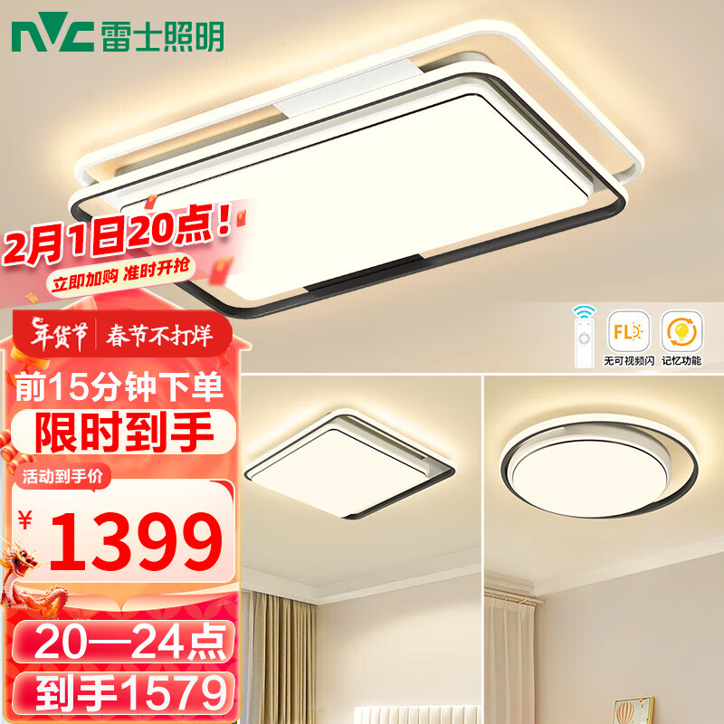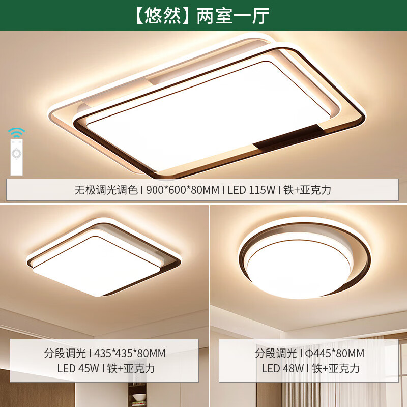雷士(NVC)客厅灯灯具现代简约LED吸顶灯 大气北欧创意【悠然】两室一厅套餐价格:2631.00元!