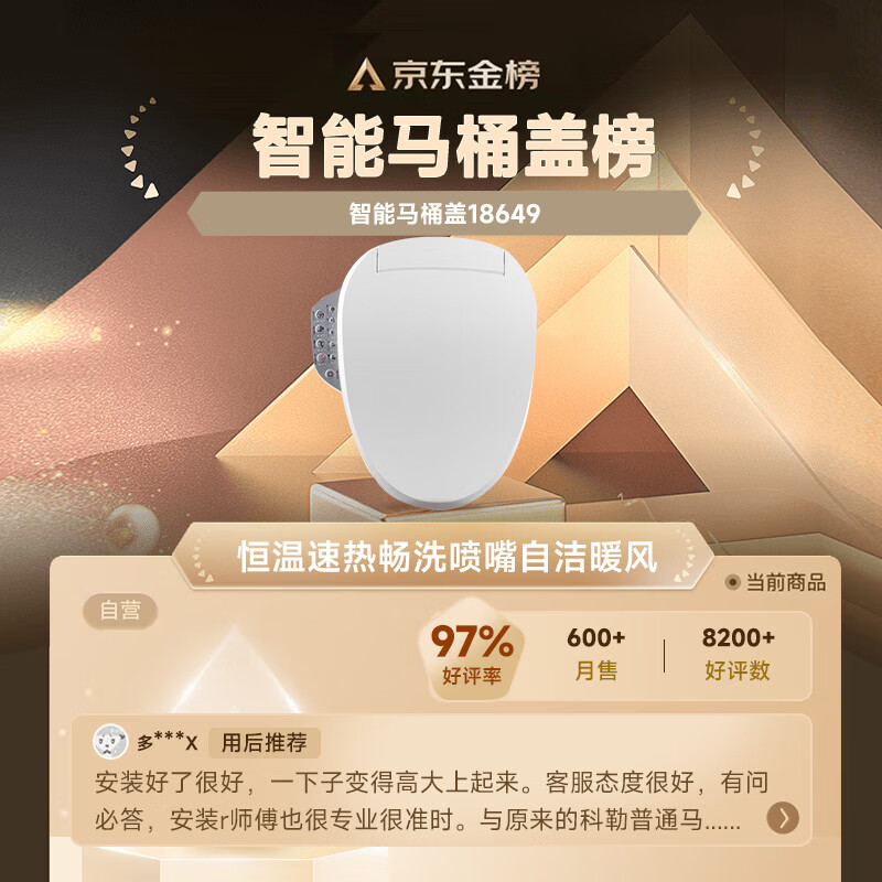 科勒(KOHLER)智能马桶盖智能坐便盖清舒宝洁身器C3-149恒动速热全功能K-18649T价格:2299.00元!