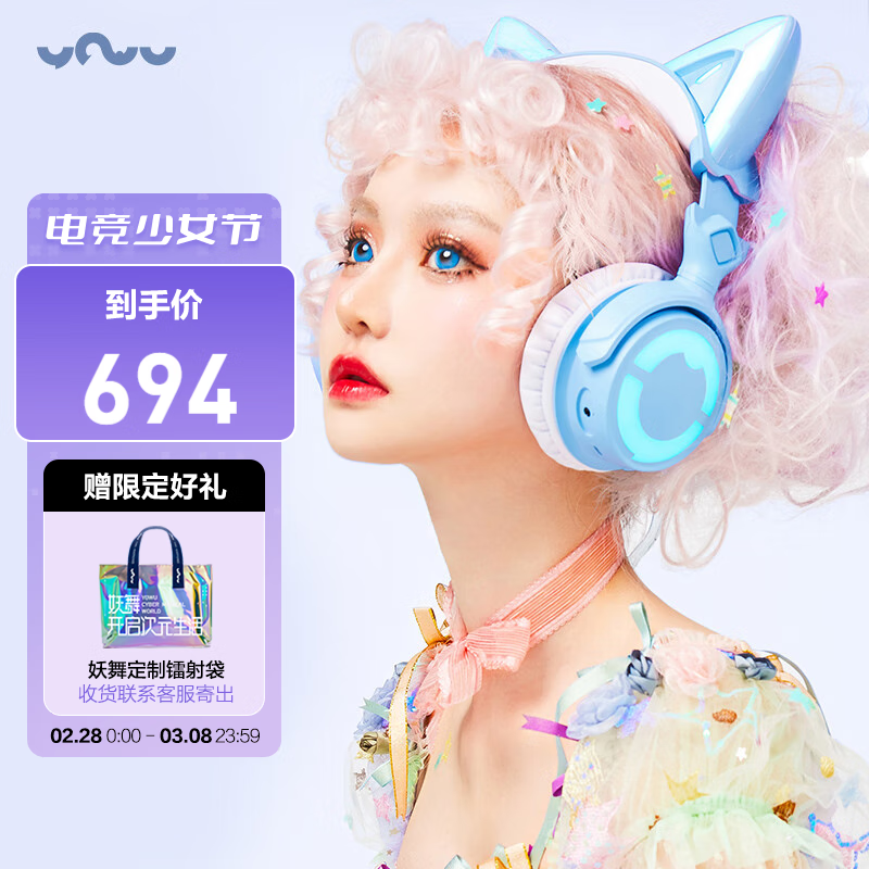 妖舞(YOWU) 猫耳耳机4 无线蓝牙耳机 头戴式降噪音乐游戏电竞耳麦 妖舞蓝价格:798.00元!