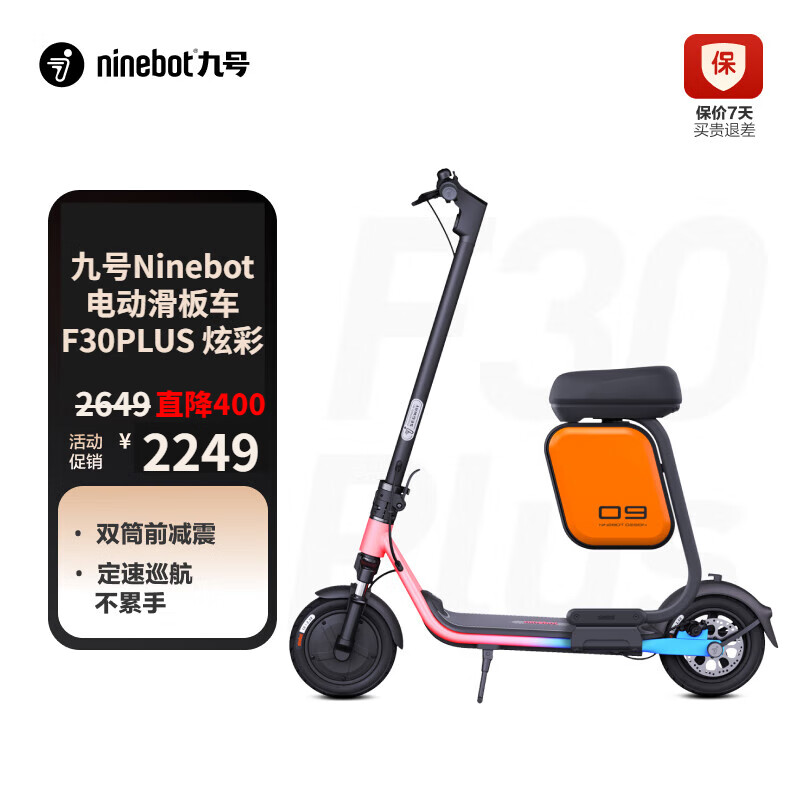 Ninebot九号电动滑板车电动车F30Plus+多功能座椅箱包 炫彩成人学生长续航减震智能滑板车价格:2149.00元!