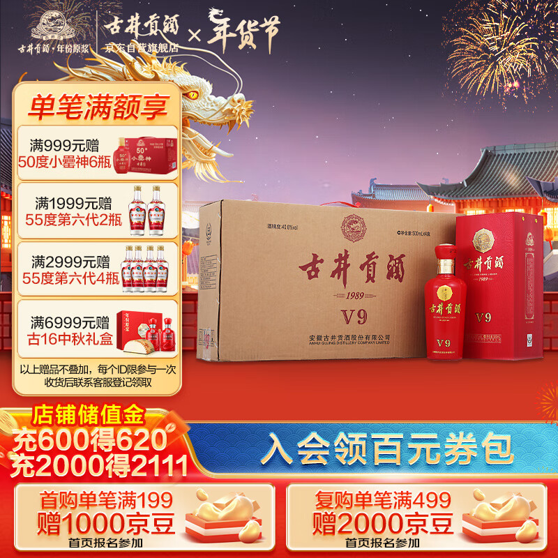 古井贡酒 v9 浓香型白酒 40.6度500ml*4瓶 整箱装 年货送礼价格:378.00元!