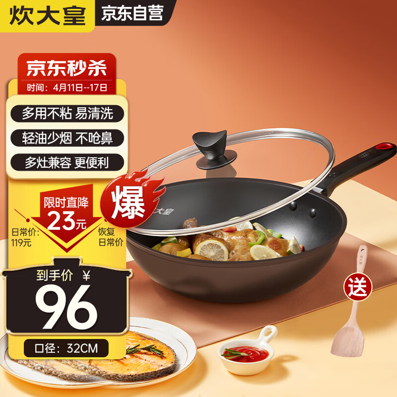 炊大皇(COOKER KING)绮丽32cm炒锅 易洁平底不粘锅 电磁炉通用炒菜锅煎锅 B50069价格:96.00元!