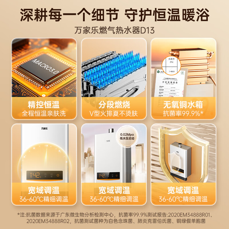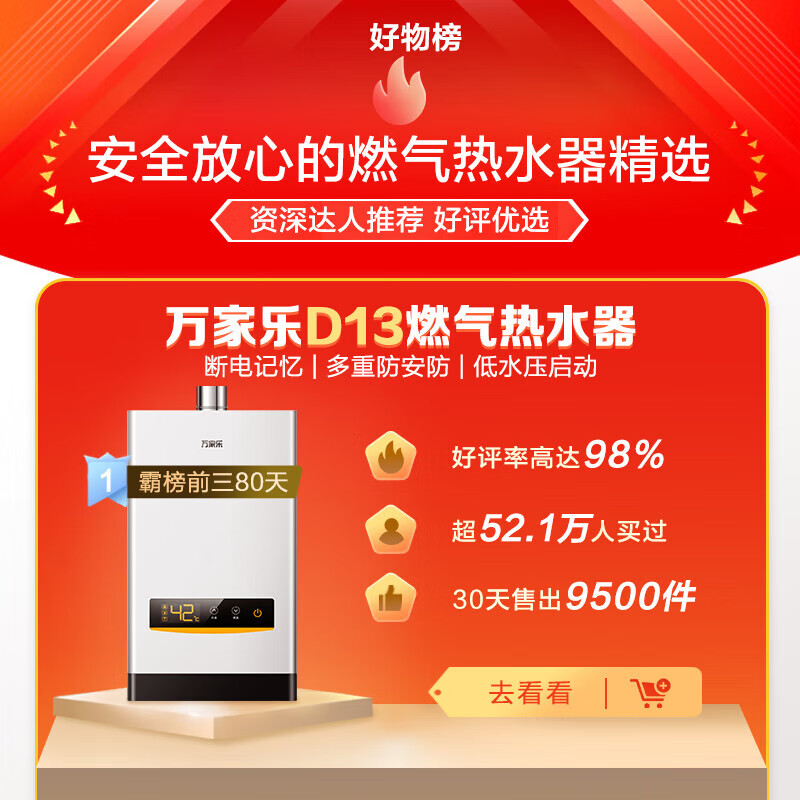 万家乐 12升燃气热水器(天然气)佛山标准产品智能精控恒温断电记忆多重防护 JSQ24-D13【行业爆品】价格:628.00元!