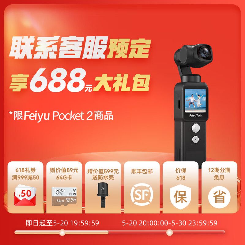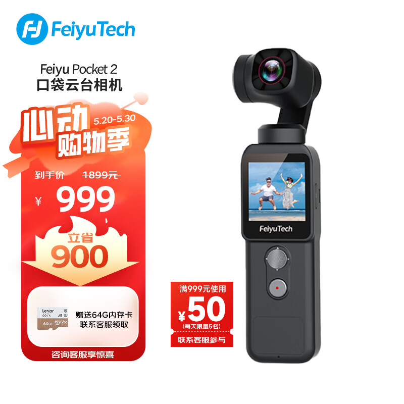 FeiyuTech飞宇Feiyu pocket2口袋相机手持云台4K高清增稳2代运动相机三轴防抖智能追踪广角vlog摄影机标配价格:1299.00元!