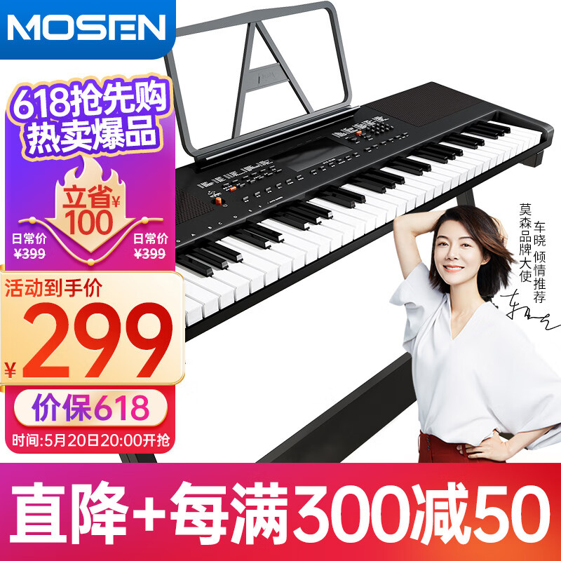 莫森(MOSEN)XTS-365电子琴 61键亮灯跟弹式 专业儿童教学多功能演奏琴 Z架型价格:349.00元!