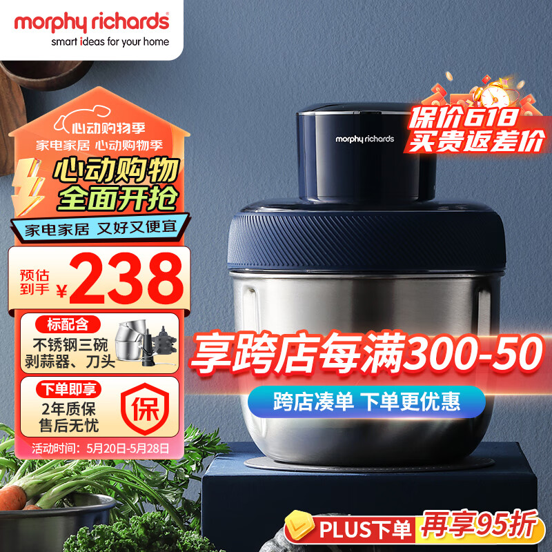摩飞电器(Morphyrichards)绞肉机 家用套娃绞馅机碎肉机 电动多功能辅食料理机打蒜搅拌机 不锈钢三碗 MR9401A价格:318.00元!