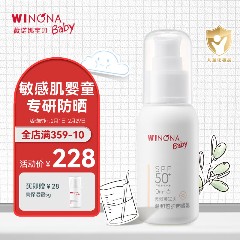 薇诺娜宝贝温和倍护防晒乳 儿童特证宝宝专用高倍防晒50ml价格:228.00元!