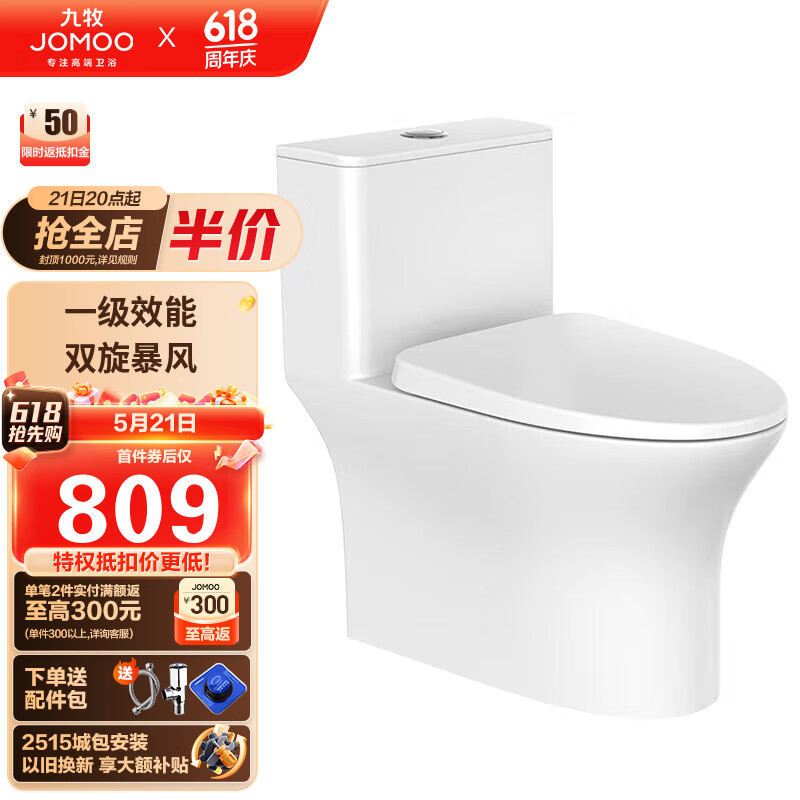 九牧(JOMOO)11396-2-1/31K-1抗菌一级水效坐便器暴风虹吸式节水马桶305坑距价格:1019.00元!