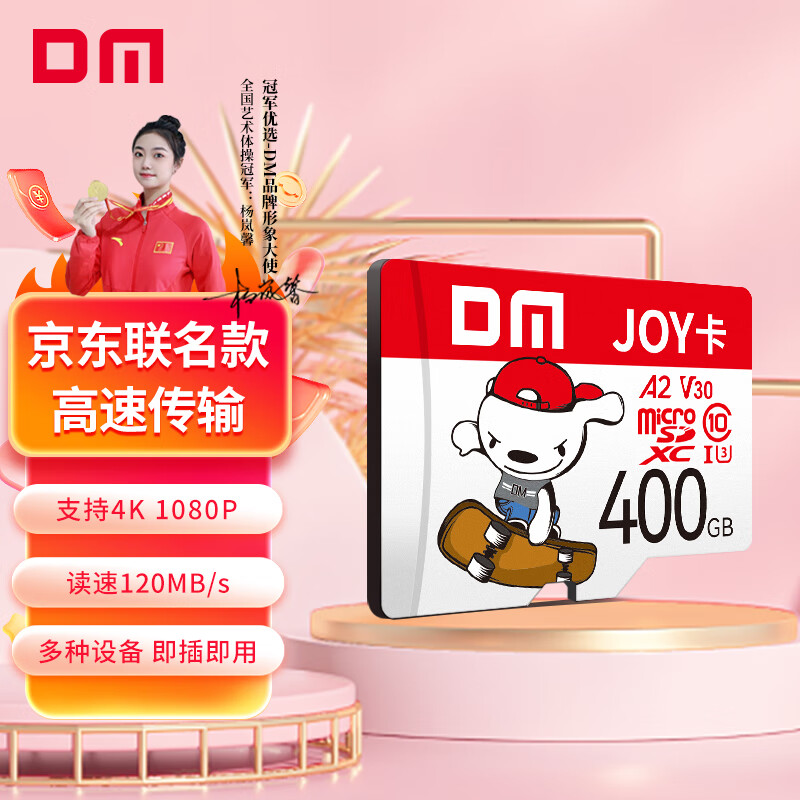 DM大迈 400GB TF(MicroSD)存储卡 JOY联名款 C10 A2 U3 手机电脑行车记录仪监控摄像头高速内存卡价格:139.90元!
