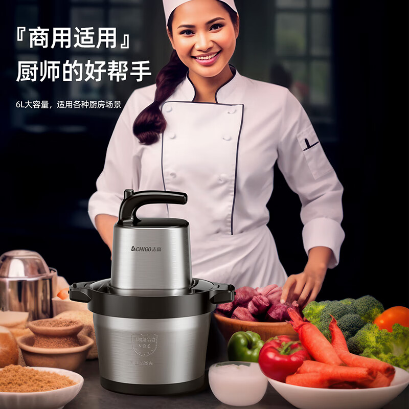 志高(CHIGO)绞肉机家用商用6L多功能辅食机电动料理机全不锈钢切肉机大功率碎肉馅机多功能绞馅机PY-8960价格:259.00元!