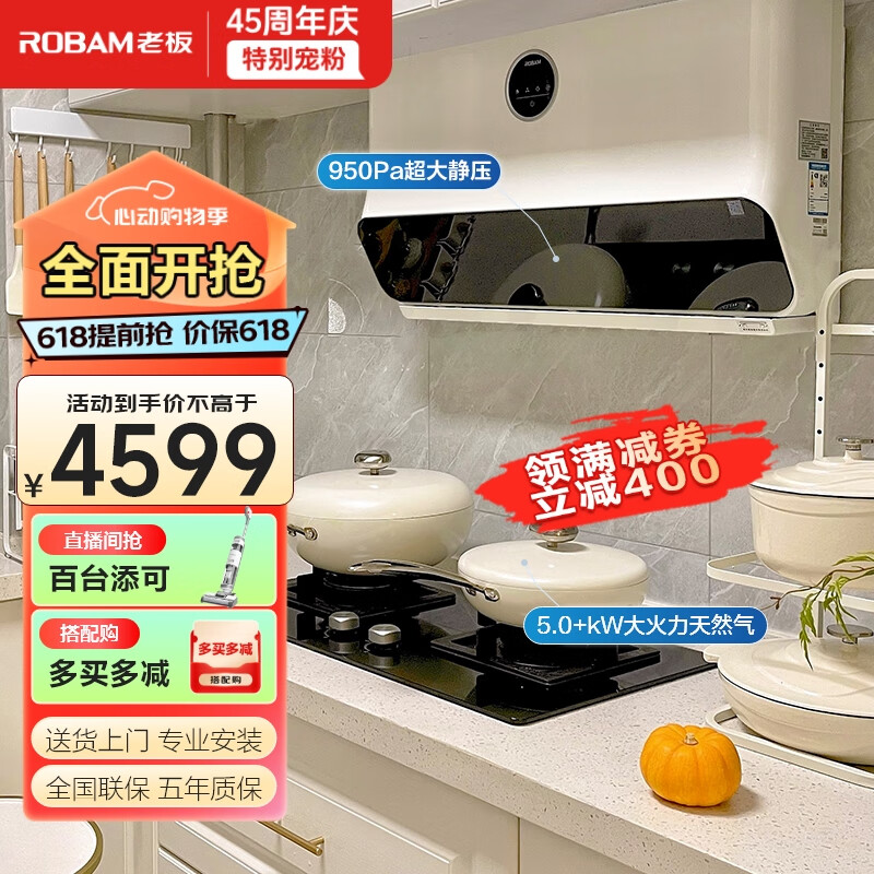 老板(Robam)抽油烟机A3S白色超薄近吸烟机80cm小尺寸23风量家用变频灶具燃气灶烟灶套装22A3S+57B2DT(天然气)价格:4999.00元!