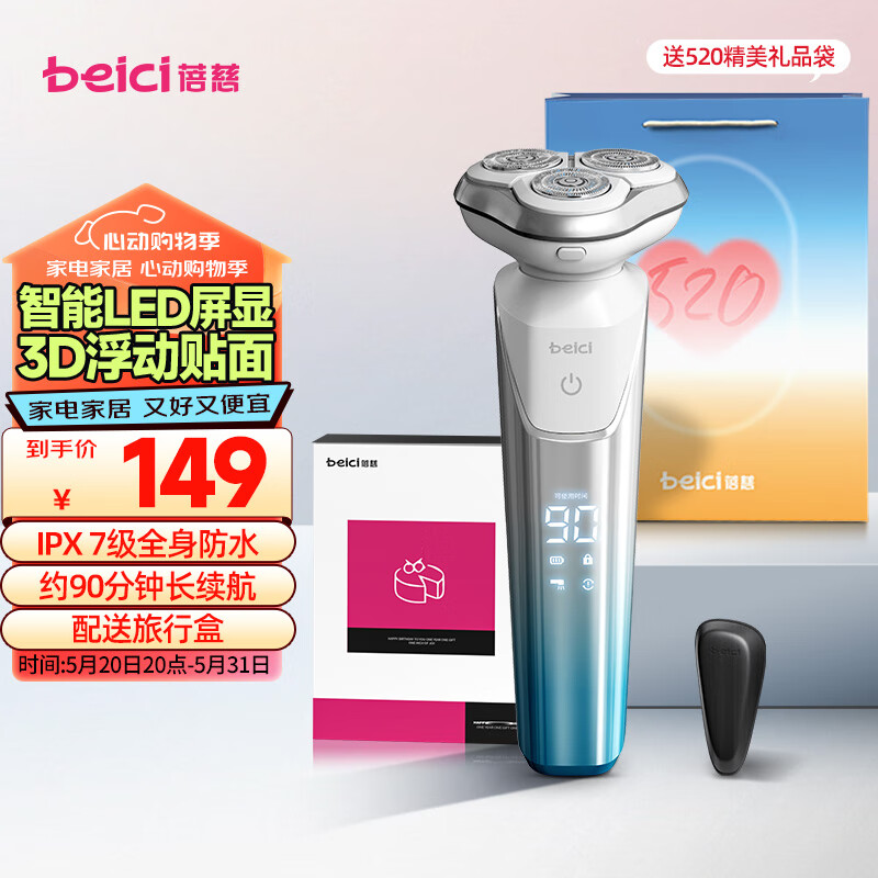 蓓慈(beici)X3剃须刀电动刮胡刀自动胡须刀旋转式男士生日礼物男生全身水洗智能屏显礼盒520情人节礼物价格:179.00元!