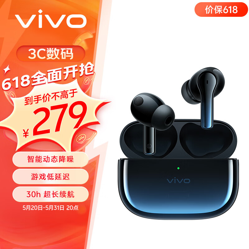 vivo TWS 2 真无线降噪蓝牙耳机 星际蓝 智能动态降噪超清音频30h续航88ms低延迟通用小米苹果华为手机价格:279.00元!